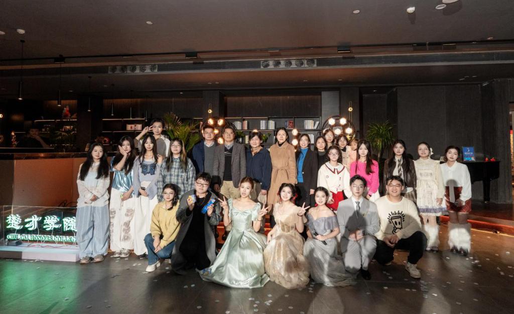 12月23日晚,楚才学院2026年“青春筑梦·楚才新篇”元旦晚会在湖北大学学术交流中心中庭举行。学校相关部门负责人,楚才计划学业导师、班主任代表及全院师生参加活动。